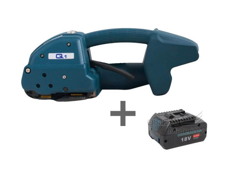 Akumulátorová páskovačka TAVOBAL Q1 pro PP a PET pásky o rozměrech 13-16 mm. Baterie je součástí balení.