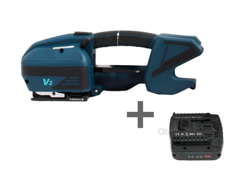 Aku páskovačka TAVOBAL V2 pro PP a PET pásky o rozměrech 13-16 mm. S automatickým napínáním pásky a provedením spoje pomocí sváru a slisování. Baterie je součástí balení.