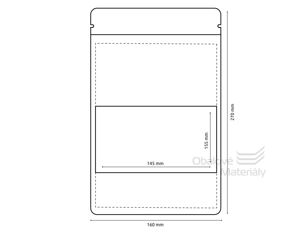 Sáček má rozměry 160*270*40+40 mm (A*B*C+C) a je vyroben z KRAFT papíru + PET + CPP.