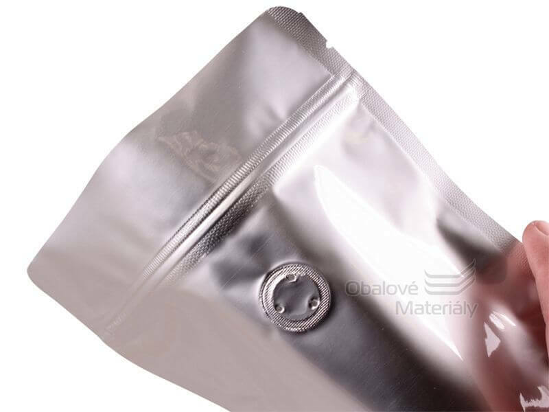 Doypack na kávu 75 g lesklý ALU, s ventilem, balení 10 ks.