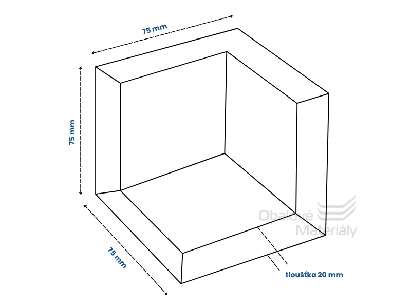 Roh má vnější rozměry 75*75*75 mm a sílu stěny 20 mm. Jednotlivé rohy lze snadno ručně odlamovat. Materiál je EPS (pěnový polystyren).