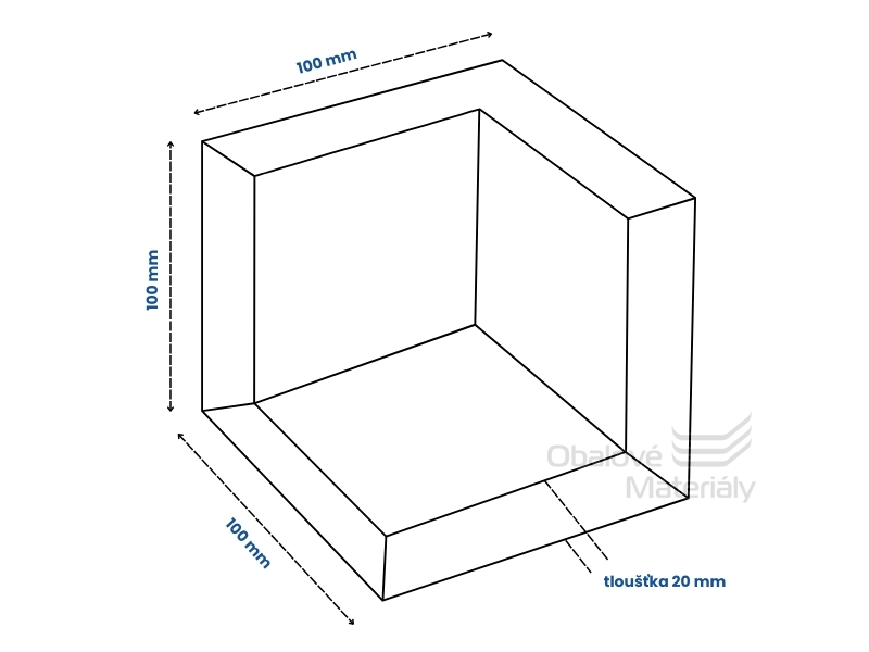 Roh má vnější rozměry 100*100*100 mm a sílu stěny 20 mm. Jednotlivé rohy lze snadno ručně odlamovat. Materiál je EPS (pěnový polystyren).