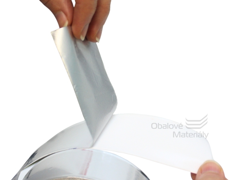 Izolační páska s vrstvou hliníku, použití pro lepení spojů nebo při výrobě a montáži vzduchotechniky. Akrylátové lepidlo.