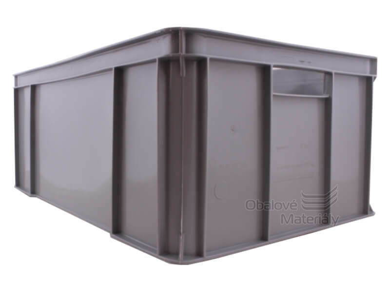 Manipulační HDPE přepravka s vnějšími rozměry 600*400*250 mm (vnitřní 565*365*235). Plné stěny a dno umožňují uložení sypkého nebo tekutého obsahu do přepravky, zároveň přispívají k pevnosti přepravky. Přepravku lze použít na stěhování či manipulaci s různými předměty. Lze ji stohovat na sebe. Nosnost přepravky je až 20 kg, takže je použitelná i jako přepravka na dřevo.