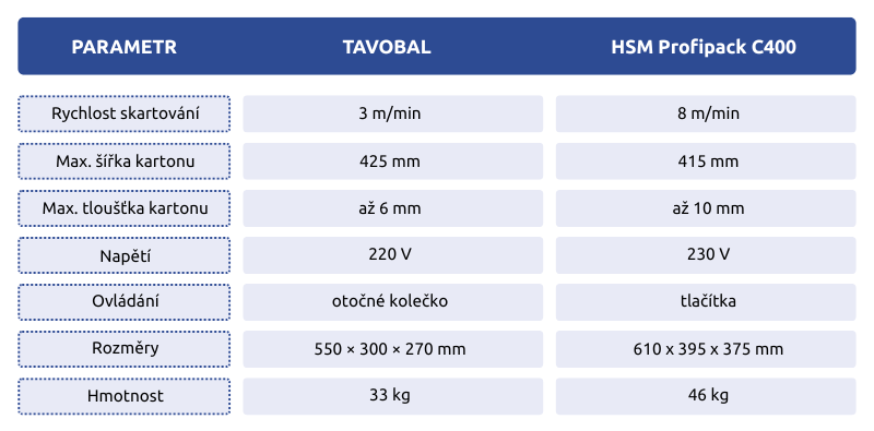 V tomto článku si porovnáme dva modely skartovacích strojů – stroj TAVOBAL a stroj HSM Profipack C400. Každý z nich má své výhody i nevýhody, na které se níže zaměříme. Oba tyto stroje naleznete v naší nabídce v kategorii Skartovače.