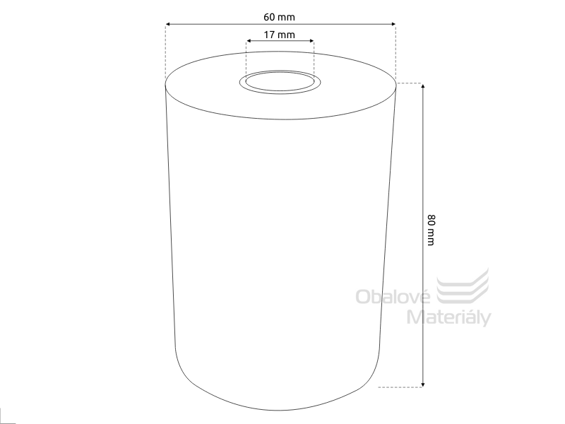 Rozměry 80/60/17 mm (šíře / průměr role / vnitřní průměr dutinky), délka 42 m.