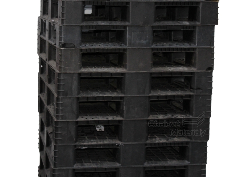 Použitá plastová paleta o velikosti 1200*1000*150 mm, černá.