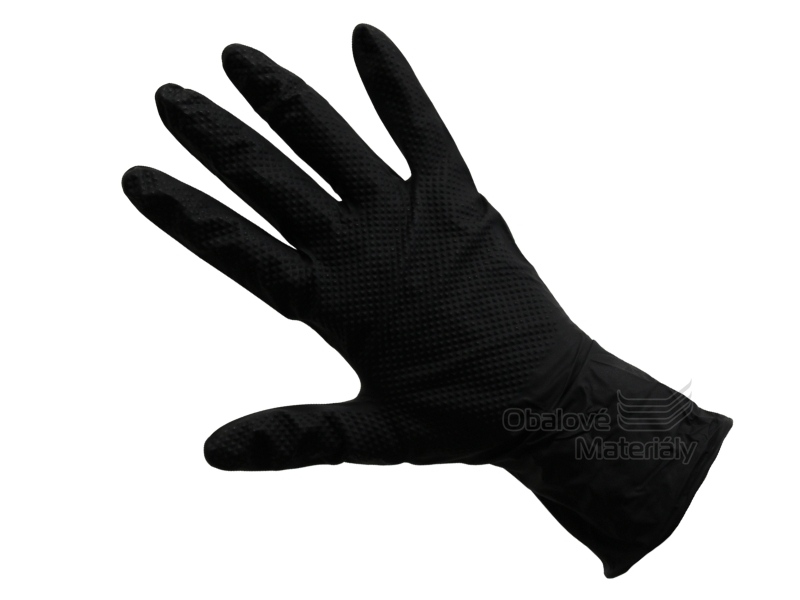 Extra silné jednorázové rukavice z černého nitrilu (bez latexu, nesterilní, nepudřené). Rukavice jsou vhodné pro kontakt s potravinami. Vrchní i spodní část rukavic je opatřena tečkovanou texturou, která zajišťuje dobrou citlivost pro jemnou a přesnou manipulaci. Balení obsahuje 50 ks rukavic v černé barvě, velikosti M.