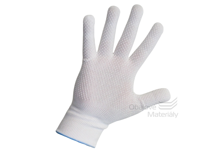 Pracovní rukavice X-Dot z bílé polyesterové tkaniny s protiskluzovými mikrovýstupky. Vhodné pro jemné manuální práce, velmi dobrá přilnavost. Roztažitelné a elastické, zakončené lemováním. Rukavice splňují normy CE EN 420. Barva bílá, velikost 10.