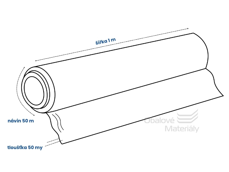 Transparentní hadice z LDPE folie na balení zboží, zvaná též nekonečný pytel nebo nekonečný rukáv. Materiál má tloušťku 50 mikronů, takže je dostatečně pevný na běžné balení. Šířka hadice je 100 cm a návin 50 bm.