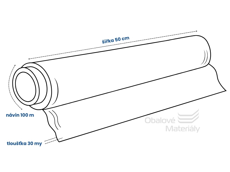 Fólie s šířkou 50 cm má délku návinu cca 100 m (záleží na zatížení). Dutinka s vnitřním průměrem 50 mm váží 680 g. Jedná se o český výrobek.