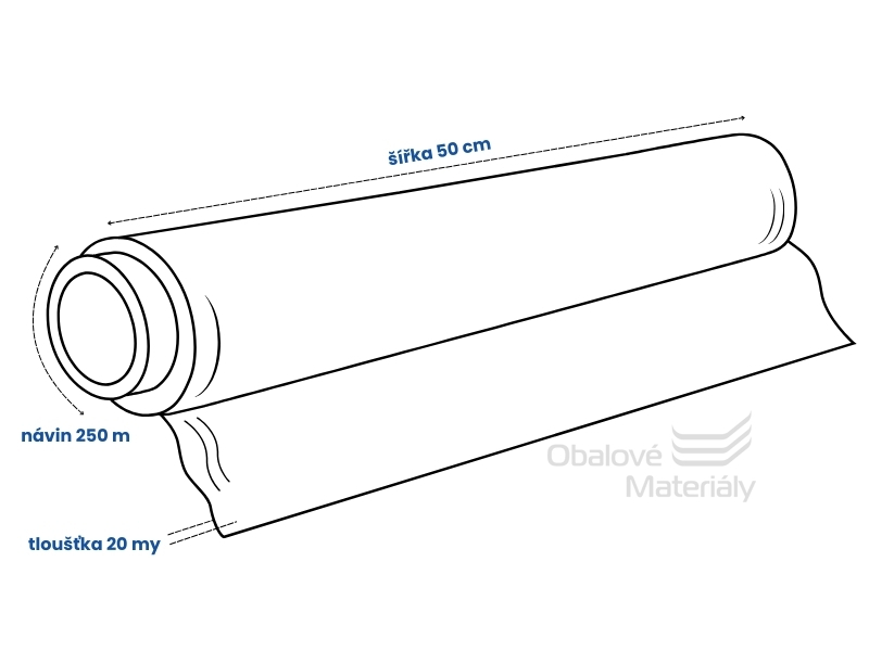 Fólie o šíři 50 cm má tloušťku 20 mikronů (20 my). Dutinka s vnitřním průměrem 50 mm váží 200 g. Fólie se prodává po jednotlivých kusech. Jedná se o český výrobek.