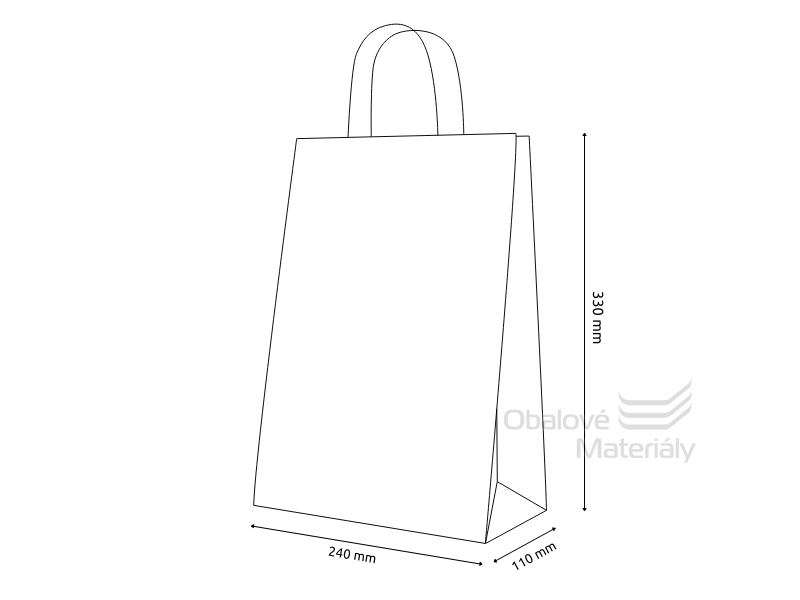 Rozměry tašky jsou 24 × 10 × 31 cm. Je vyrobena ze 100% bílého recyklovaného papíru o gramáži 100 g, má kroucená držadla a boční sklady s plochým dnem, které zajišťují stabilitu a dostatek prostoru pro dárkové balení.