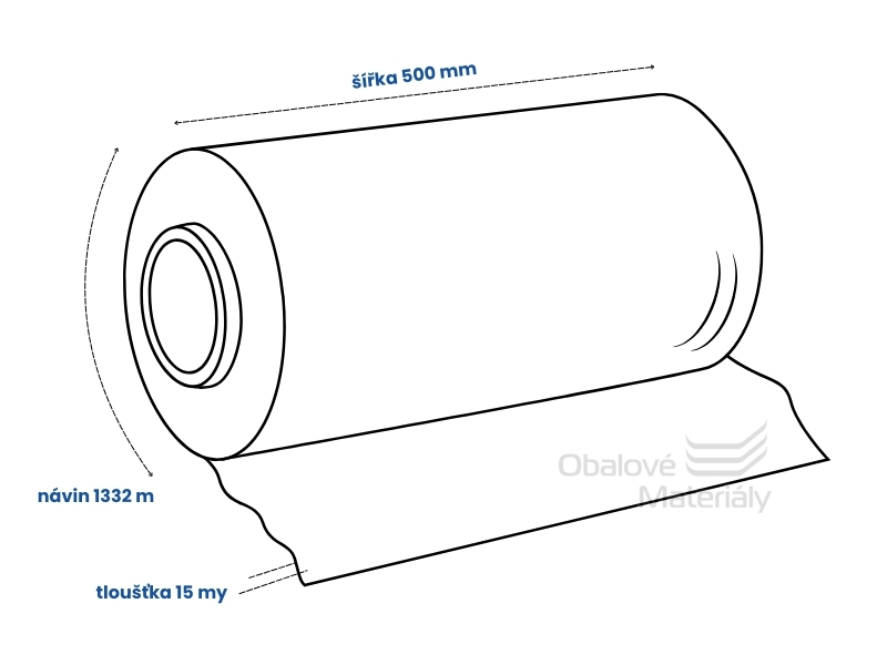 Jedná se o polohadici se šířkou 500 mm, tloušťkou 15 my a návinem 1332 m. Fólie má atest pro styk s potravinami.