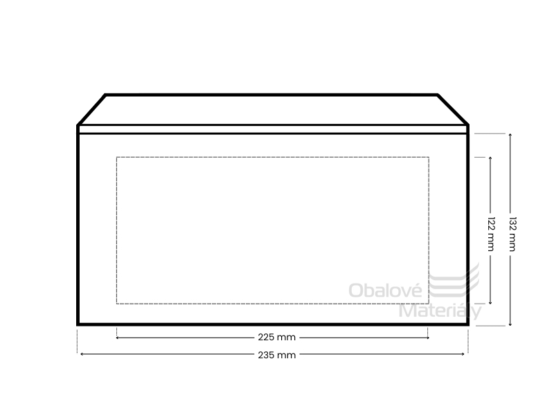 Průhledné obálky s potiskem typu C6 long (DL) mají vnější rozměry 23,5*13,2 cm, vnitřní pak 22,5*12,2 cm.